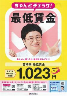 宮崎県最低賃金は、本年、11月16日から「時間額1,023円」に改定されることになりました。